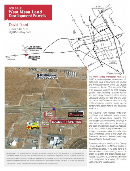 6.1 Acre Parcel FOR SALE US 70 @ ROADRUNNER PARKWAY Parcel Size: 6.133 # ACRES Location: U.S. HIGHWAY 70 Frontage: 626 # FEET Sales Price: $6.00...