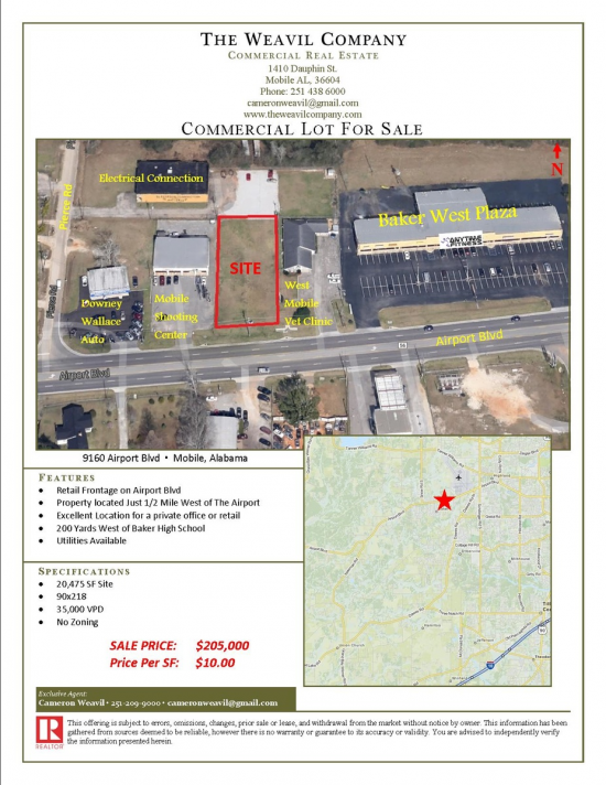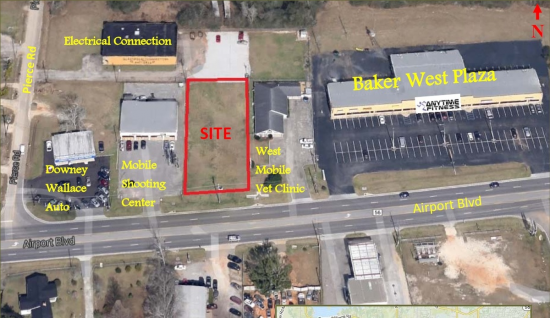Retail frontage on Airport Blvd. Property is located just 1/2 mile west of the Mobile Airport. Excellent location for a private office or retail. 200 yards west of Baker High School. Utilities available.