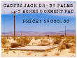 SaveCACTUS JACK RD. - PRICE $9000 - This 5 acre parcel has a nice approx. 400 sf. cement pad on it. Nice palm trees & cypress tress line along the...