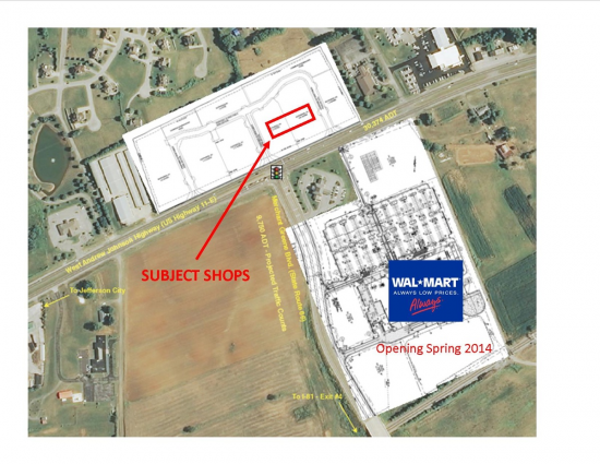 Proposed shopping center directly across the street from a new Wal-Mart Supercenter that is currently under construction (Opening Fall 2014)....