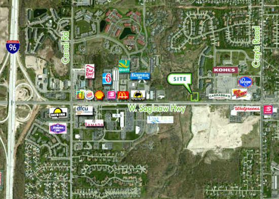 For Sale! 2.13 Acres on West Saginaw, just west of Kohl’s. Excellent development site for restaurant, retail or office. Convenient access to...