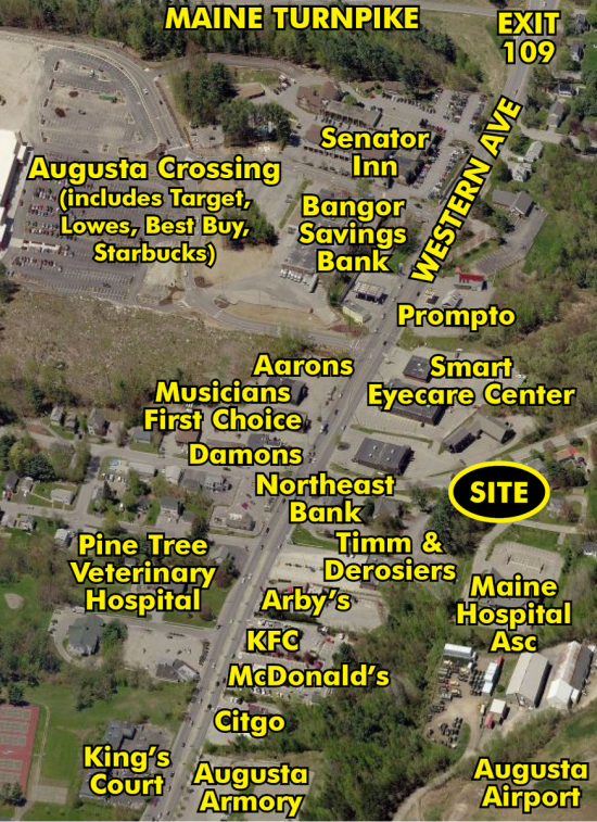 0.5± mile frontage alon Civic Center Drive 42.8± AC development site Near ME Tpke Exit 112 Directly across from the University of Maine Augusta...
