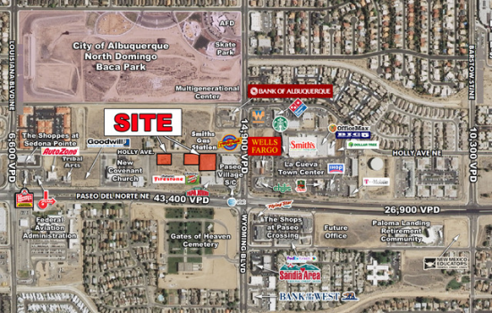 •Ideally located at the intersection of Interstate 25 & Paseo Del Norte- Traffic Count at Intersection- 185,600 VPD with Interstate Frontage....
