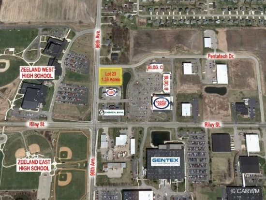 Nice, 1.35 acre lot located on the northwest corner of E. Washington and N. Centennial Street in the city of Zeeland. Zoned C-3 Highway Commercial.