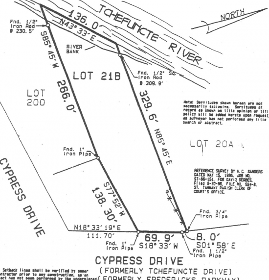 Beautiful Waterfront lot in prestigious Old Landing Subdivision. This lot has 136' on the deep Tchefuncte River. 70' frontage on Cypress Drive.
