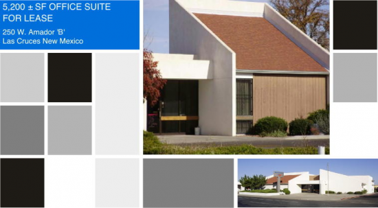 5,200 SF OFFICE SUITE For LEASE 250 W. Amador 'B' Las Cruces New Mexico 88005 FACILITY SIZE: 5,200 ± Square Feet - Office: 2,948 ± SF - Storage:...