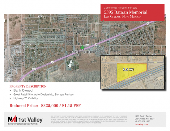 Property Features This 6.5 Acre parcel is located just off Highway 70 on the North Side of Bataan Memorial Frontage Road in between Mesa Grand...