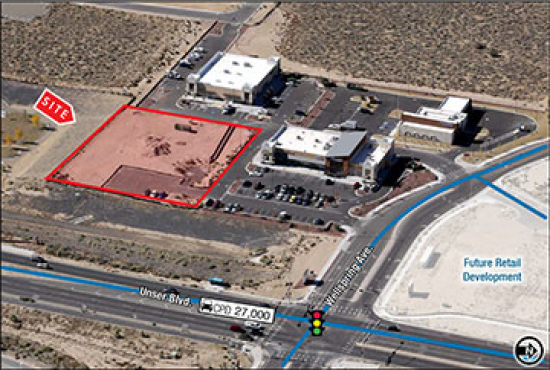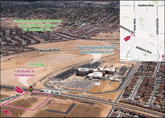 Prime Retail/Medical Pad Site at Unser Pavilion! • Immediately across from new ±66 acre Presbyterian Rust Medical Center • Unser frontage...