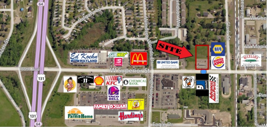 Great highway commercial site just off Us 131 at Wayland exit. Tough to find parcel on Superior St. Located between Burger King & United Bank....