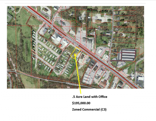 Commercial land with a house located at the Southeast corner of Curry Pike and Woodyard Road. Property is North and East of Griner Engineering....