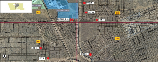 8 residential lots in the Volcano Cliffs area near Volcano Vista High School (see attached satellite pic). Lots can be found on Zone Atlas pages...