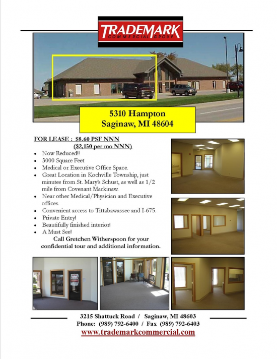 Great location on Hampton Place which is right off of Tittabawassee Road near I-675. This office space is very nicely finished!! Call Gretchen...