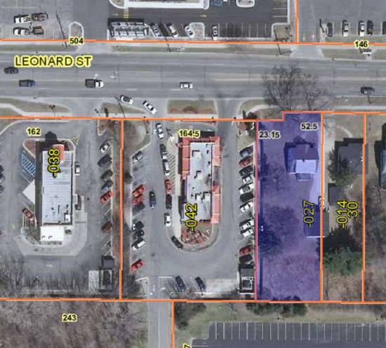 1.5 acre vacant lot at corner of Plymouth and Leonard is perfect for an office/service use, or it may be able to rezoned to accommodate residential...
