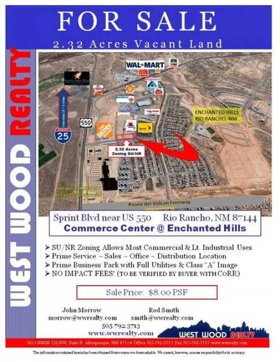 Sprint Blvd near US 550. Near the new Paseo del Volcan Fwy. Will build-to-suit... land and building package constructed to tenant or occupant...