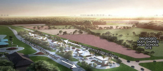 Wahoo Plaza is an exciting new commercial development between the North and South bound lanes of the Foley Beach Express. The Foley Beach Express is a 4-lane expressway providing direct access from Interstate-10 to the vacation destinations of Orange Beach and Gulf Shores, Alabama, and Perdido Key, Florida. Wahoo Plaza is located 7 miles North of Orange Beach and Gulf Shores and 3 miles South of the OWA development , which is currently under construction. The development is also directly to the East of the site proposed for the new Gulf Shores High School. Outparcel lots ranging from 1-4 acres are available for sale or lease. A perimeter service road will encircle the development, providing easy access from northbound and southbound traffic. Wahoo Plaza will be well-suited for fast food restaurants, specialized retail and office uses, and quick-service vehicle related businesses.