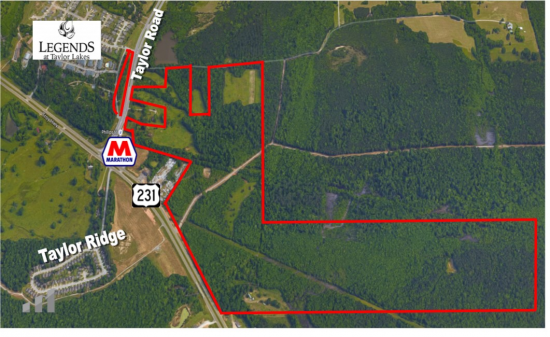 Moore Company is presenting 250±acres of land located with frontage on main corridors of Taylor Rd and Hwy 231. This area is steadily growing with several new residential developments to the north, new commercial developments 2 Miles Away. Property Has Sewer And Water On-Site. Traffic Counts of 24,630 AADT on Hwy 31 & 17,130 AADT on Taylor Rd. This space offers accomodations for: other.