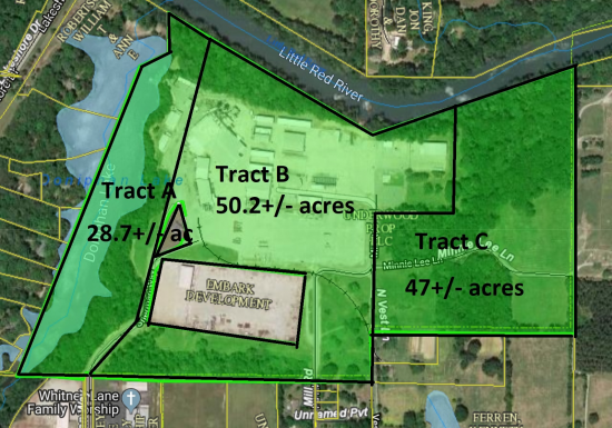 Large industrial complex within city limits of Searcy, AR. Three tracts totaling 125.9+/- acres on the banks of the beautiful Red River. This property features 16 for-lease industrial buildings totaling 211,575 +/- square feet. Tract A (28.7+/- acres) and Tract B (50.2+/- acres) contain the industrial complex, while tract C (47+/- acres) is land with great potential for additional industrial or residential subdivision development. Tracts can be purchased all together or separately. This space offers accomodations for: manufacturing.