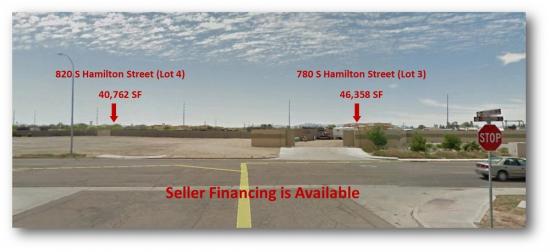 40,762 SF Lot available at $301,327. Seller financing is available. Lot 4 in the Village at Bogle Park. Great opportunity for new office, industrial or industrial flex space close to downtown Chandler. Lot includes block fence with gate. 780 S Hamilton St (Lot 3) is also available for Sale at $301,327. Lots may be combined.