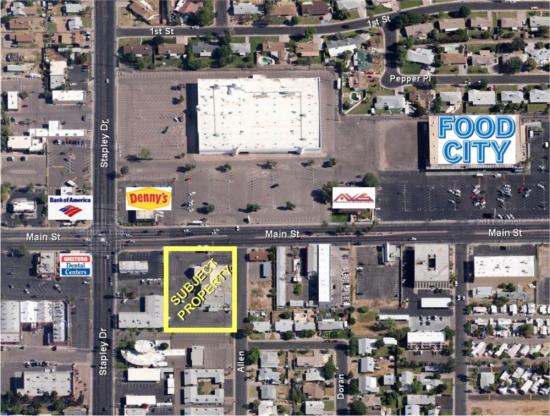 Located at the SE Corner of Stapley Drive and Main Street. Great location and visibility in active business and retail corridor. Located across from Food City. Main Street features many hotels, restaurants, retail shops, car and RV sale lots. Traffic counts exceeding 27,000 VPD on Stapley and 17,000 VPD on Main Street.