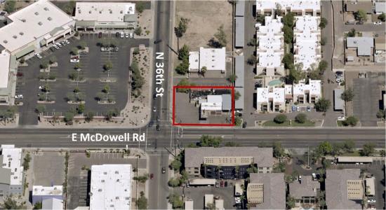 Located on E McDowell Rd and N 36th St just north of the Loop 202 Red Mountain Freeway. Close proximity to SR 143 and Sky Harbor International Airport. Surrounded by numerous multifamily housing complexes. Population exceeds 125,000 in 3 mile radius.
