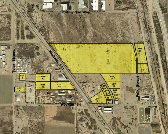 Finished industrial lots from $2.50 s/f. Great location at Expressway 86 and Hwy 111. Enterprise Zone and Empowerment Zone benefits. The City of Coachella wants your business Building permits within 45 days. Adjacent to railroad, convenient to I-10 and EXP 86. One mile north of Jacqueline Cochran Airport. 15 million people within 150 miles.