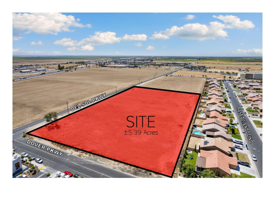 ±5.39 Acres of Vacant Land Zoned Commercial. Prime Development land located near significant residential offering a great location for office, retail, or commercial developments. Highly visible location with easy nearby Highway Exit and Entrance off 1st Ave. Quick access to CA-99, which allows for convenient access to all the major Cities in the area absorbing from Bakersfield, Tulare, Hanford, Visalia, Fresno and more. The zoning is flexible and allows for a variety of commercial uses. Existing ramps dispense traffic near the subject property. Strategically positioned at Dover Parkway & Del Sol Parkway, which carry approximately ±142,200 cars per day in the area; 1st Ave: ±4,986; CA-99 northbound: ±70,808 and CA-99 southbound: ±66,406. All wet & dry utilities at site.