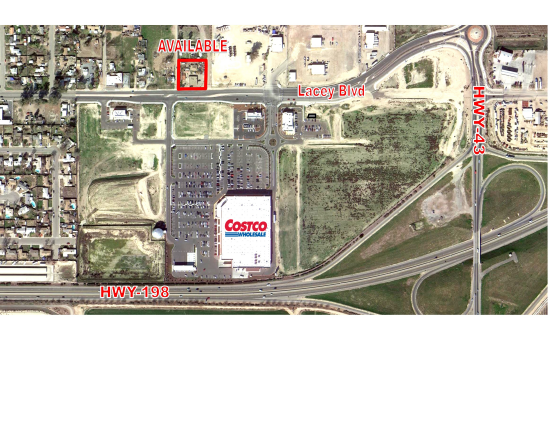 ±2,720 Freestanding restaurant building with planed drive-thru on ±0.8 acre lot with access via Lacey Blvd. Offers direct Lacey Blvd frontage with ample parking spaces. The property is across the street from the Hanford Marketplace Shopping Center which features Costco and other major retailers including Starbucks, Taco Bell and Panda Express. The property is located in a growing area in Hanford with new developments to look forward to. This property carries an average daily traffic count of over 46,511 cars. This includes Lacey Blvd, State HWY-43 & State HWY-198. This space offers accomodations for: restaurant.