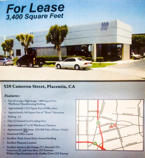 (Nearby to Orangethorpe, Crowther, Melrose, 57, 91, 55 freeways, Placentia, Fullerton, Anaheim, Yorba Linda, Brea) This space offers accomodations for: industrial warehouse office high image.