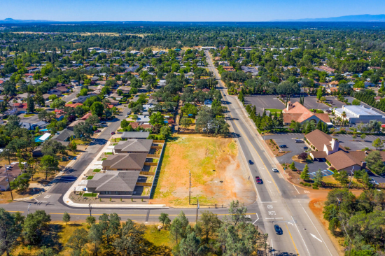 Level corner commercial lot ready for construction at Shasta View Drive and Goodwater Avenue just south of Highway 44 in Redding, CA. High traffic counts averaging 15,000+ cars per day. Lot has been previously graded and fully cleared, with storm drain and City of Redding water already installed and available onsite (new fire hydrant at northeastern corner). Sale price includes all paperwork and plans for a 12,000 square foot professional office project (two 6,000 sf buildings) that was fully entitled and recently approved by the City of Redding. This space offers accomodations for: office.