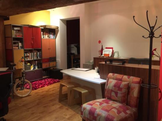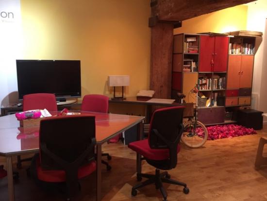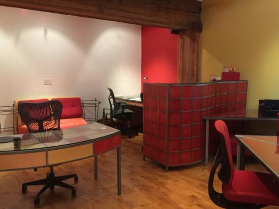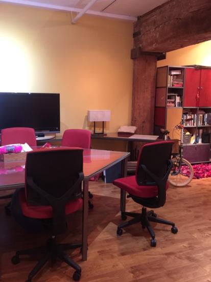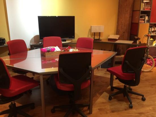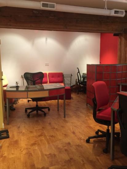 Has: 3 workstations with Herman Miller chairs, 1 reception desk, large conference table area, TV for projecting presentations, Wifi.