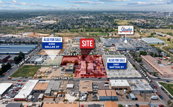 Rare 1.24 acre development site positioned immediately adjacent to the now famous Stanley Marketplace which has propelled this neighborhood into one of the hottest submarkets in Metro Denver. The property consists of four (4) parcels currently 100% leased with month-to-month tenants at below market rates which will allow the buyer to cash flow the property while pursuing construction plans and permits. The site strongly appeals to developers as the property has permissive zoning (MU-OA-G) which offers “No Max” height restrictions. Combine with purchase of contiguous parcels at 2350 Dallas St and 2481 Dayton St for a total of 2.48 Acres. This space offers accomodations for: other.