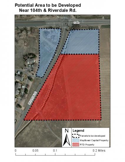 The southeast and southwest hard corners of 104th and Riverdale, One block East of Colorado Blvd & 104th where light rail is running through.