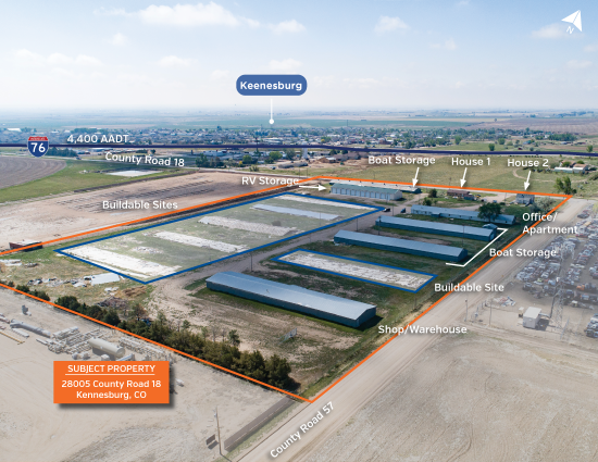 I-76 RV and Boat storage currently houses approximately 70 boats, 12 RV's and includes two residential rental properties. The 14+ acres has significant room to add additional buildings and double it's currently capacity. The location, visible from I-76 attracts clientele from Brighton, Commerce City, Denver and communities to the east.