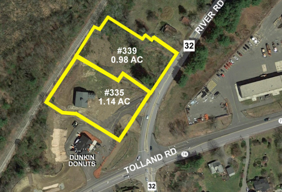 2 parcels. 1 acre parcel (#339) which abuts 1.14 Acre parcel (#335). For sale together or separately. The price for both is $475,000 for a total of 2.12 acres. There is a new Dunkin Donuts abutting parcel #335. Easement in place for DD and #335.