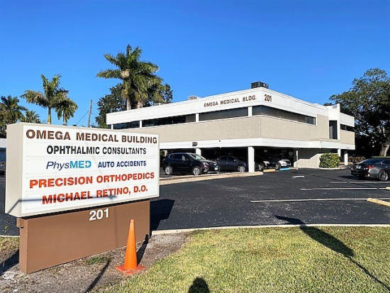 The Omega Medical Building is located directly across from Manatee Memorial Hospital. Medical Office with around 940 sf comes with a waiting area, reception/check in station, 3 exam rooms, file/storage room, sink/breakroom, and a restroom. Additional handicap restroom is located in the common hallways just outside of this suite.