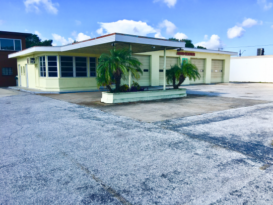 Retro Style building on a CORNER LOT. Heavily travelled road to CLEARWATER BEACH (RATED AMERICAS NUMBER 1 BEACH) This well maintained building is block construction and has plenty of parking as well as a tall Pylon Sign. This property has 4 overhead doors, an office, and 2 bathrooms.