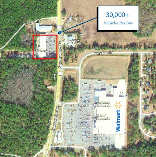 Located in most populated area in Wakulla County on Crawfordville Highway (Hwy 319) in Crawfordville, Florida.