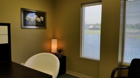 Take a look at the view from the office becoming available the end of February - Large enough for 2 or 3. This space offers accomodations for: golf course office, heathrow office, lake mary office, lakeview office, small office, virtual office.