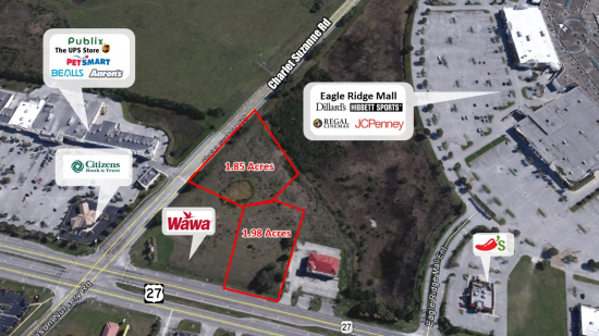 The out parcels are located next to WAWA gas station. Best use will be a QSR, Retail, medical, and or self storage. Pad-ready delivery, access to be constructed, utilities to site, master retention offsite This space offers accomodations for: retailpad.