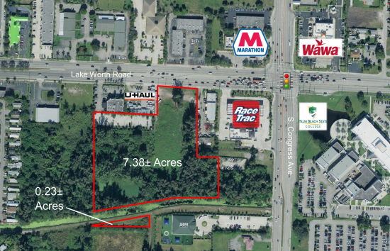 7.38± acre parcel with 215± feet along Lake Worth Road. Current zoning permits multi-family, mixed-use development, retail, office, and more. All utilities are to the site. This property is a part of the College-Hospital Overlay ("CHO") which promotes redevelopment. With Palm Beach State College and JFK Medical Hospital both in close proximity to the property, there is a need for multi-family, retail, medical office, restaurants, and personal services. The objective of the new overlay is to foster diversity and a mix of restaurants, retail, offices, and other commercial uses that benefit from drive-by traffic of Palm Beach State College and JFK Hospital. This space offers accomodations for: multifamily.