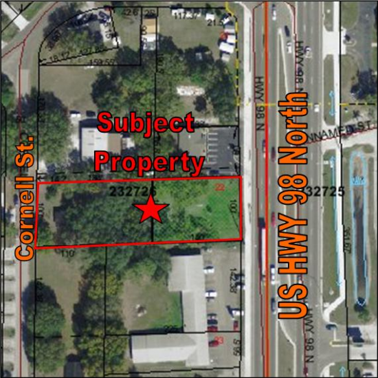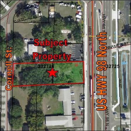 100' frontage US Highway 98 North and Cornell St. 324' depth (approx.)
