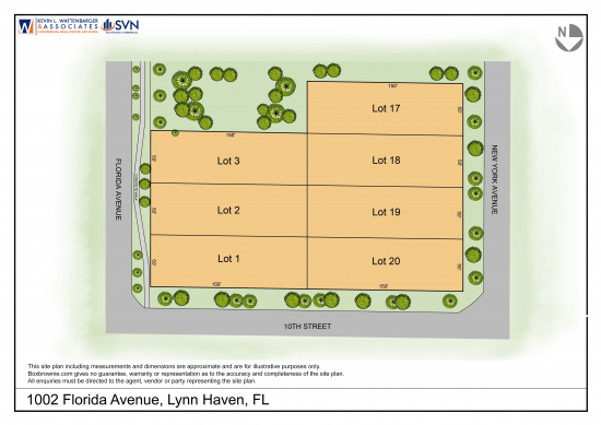 Kevin Wattenbarger & Associates | SVN Southland Commercial Real Estate Advisors are pleased to present the 1.2 +/- acre mixed-use development site located at 1002 Florida Ave, Lynn Haven, FL for sale. The property is currently two (2) parcels with seven (7) platted lots (50' frontage x 150 depth). The property possesses road frontage on three sides: 10th Street [300'] to the North, Florida Avenue [150'] to the East, and New York Avenue [200'] to the West). The 1.2 +/- acres currently possess Mixed Use land classification (City of Lynn Haven) and located within Flood Zone X. The site is located across from Lynn Haven Elementary School and is one block west of Lynn Haven Parkway (a/k/a Hwy 77). This 1.2 /- acre property could be an ideal development site for new construction single-family homes or a small multi-family complex. Zoning Letter from the City of Lynn Haven and previous boundary survey are provided in the property files. This space offers accomodations for: multifamily.