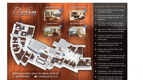 • Complimentary Monthly Wine & Cheese Pairings for DaskLux customers and their guest. This space offers accomodations for: business location, fully furnished, luxury offices, professional. This space offers accomodations for: business location, fully furnished, luxury offices, professional.