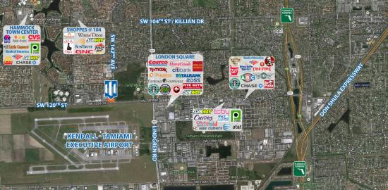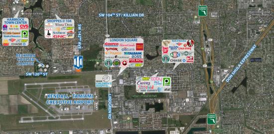 Located on the northeast corner of SW 120th Street & SW 142nd Avenue, across from the Kendall Tamiami Executive Airport. One half mile west of London Square Shopping Center.