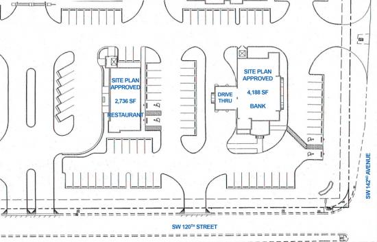 Outparcel B is a 27,886 SF parcel on the corner of SW 120th St & SW 142nd Avenue. This space is site plan approved for a 4,200 SF bank with three drive thru lanes. Join other banks on SW 120th Street, including Citibank, Bank of America, Wells Fargo, BB&T, and Chase.
