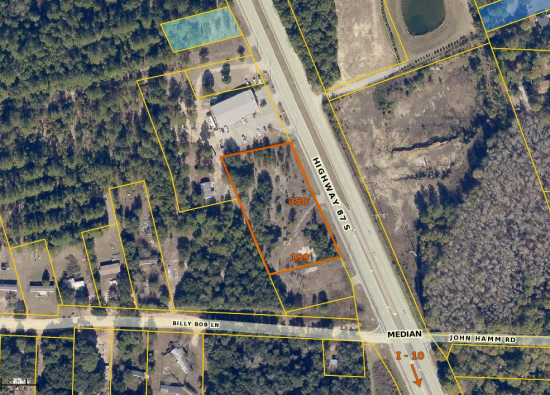 Hwy 87 S. retail/business location next to Piggly Wiggly & just north of I-10. 1.6 acres with 350' of road frontage . Zoned HCD for most commercial applications. This location is on a direct route to Hwy 98, city of Navarre & Navarre Beach. Other businesses in the area include Holiday Inn Express, Waffle House, Raceway & Kampgrounds of America ( KOA ). 350' x 199'