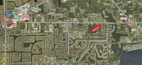 One block of commercial site on Pondella Rd, ½ mile west of US41, extending 282’ from Orange Ave to Travis Ave with frontages on Orange Ave and Travis Ave. 36,612+/- SF, 0.8+/- acres CS-1 (Special Commercial Office District) zoned, ideal for an office building or minimum level of retail sales and personal services.