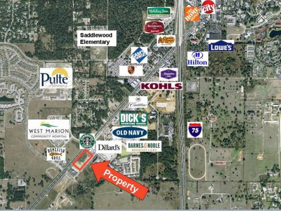 Sperry Van Ness is pleased to exclusively offer this high visibility commercial land with excellent frontage on Hwy 200 near I-75. This property is located across the street from West Marion Hospital, next to Market Street Lifestyle center and in front of the Hilton Gardens Inn. The property is sub-dividable. Neighboring retailers include: Dillard's, Dick's Sporting Goods, Bonefish Grill, Panera Bread, Barnes and Noble, Ulta Cosmetics, DSW Shoes, Old Navy, Orvis, J. A. Bank, Starbuck's, American Pizza Pie Company, Spicy Pickle and Mimi's Cafe.