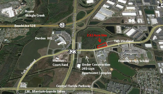 The 2655 Taft Vineland property was previously approved for the construction of the South Orlando Professional Center, a two story office building consisting of approximately 27,000 sq. ft for office/medical office use. The site includes 100 surface parking spaces. While the permits for this building have expired, the prior approvals and site plans provide excellent examples of stylish building and development opportunities at the site.