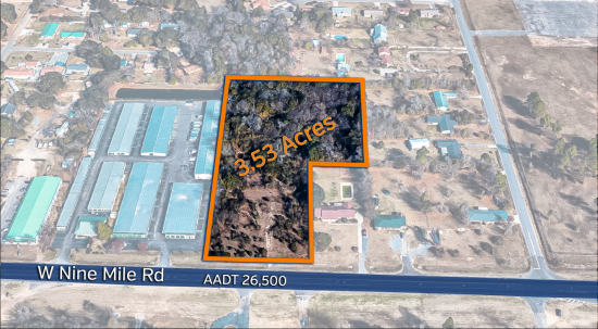 Great development site available for purchase. This 3.53 acre site includes 220 feet of frontage along the north side of Nine Mile Road/Highway 90 between Bowman Avenue and Cove Avenue. This property has good visibility, high traffic counts, great demographics, and is located in the fastest growing area of Pensacola. Potential uses for the property include retail, shopping, schools, medical, offices, convenience stores, restaurants, apartments, single family homes, churches, and/or motels. The site is high and dry with no wetlands indicated on maps, and is located in Flood Zone X (areas of minimal flooding). This space offers accomodations for: office.